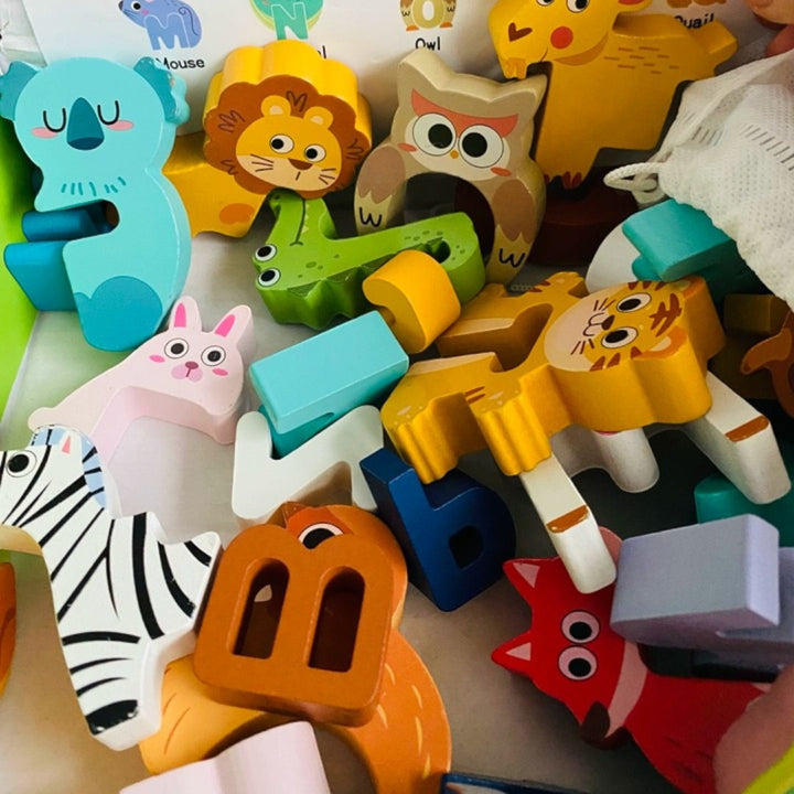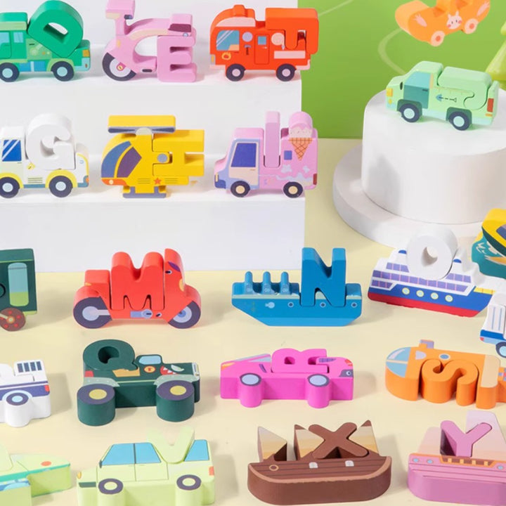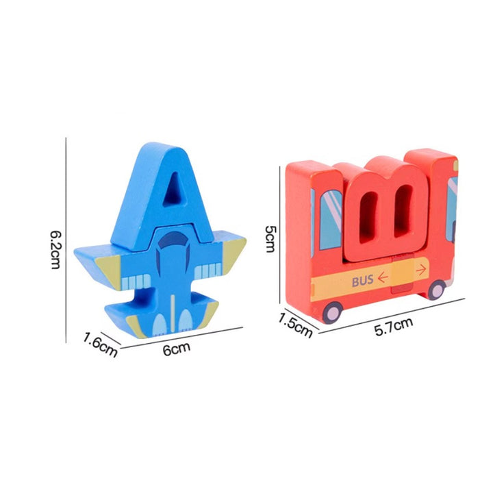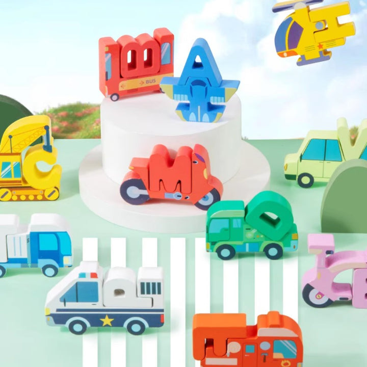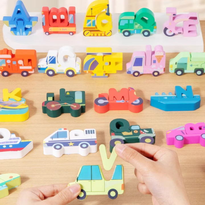 - 巧妙卡位配對設計: 每一個字母都配備有對應的主題卡位(如車輛、動物),精準配對,增加遊戲樂趣。